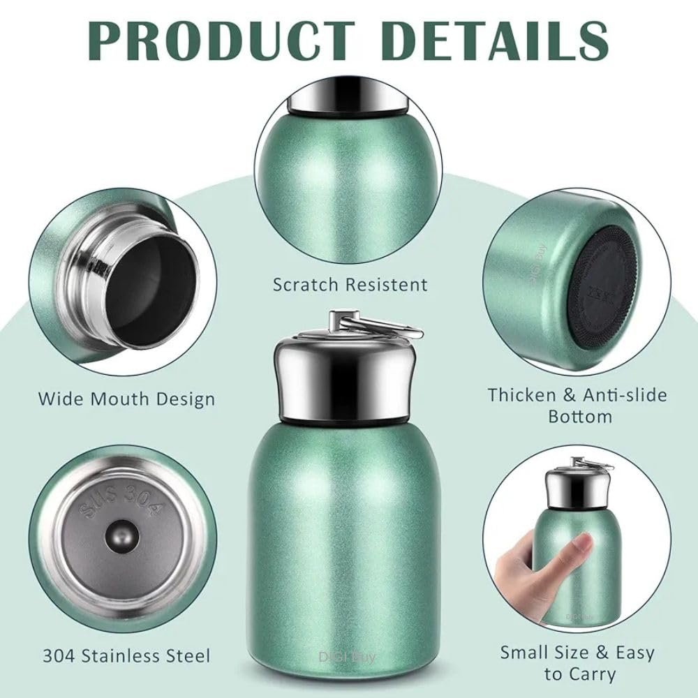 A compact stainless-steel mini bottle with double-wall insulation, leakproof design, and a stylish finish—perfect for travel, office, and daily hydration.